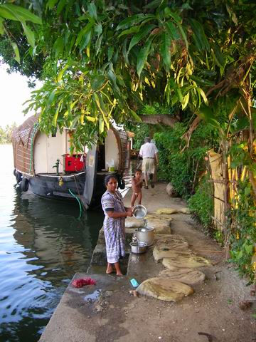 auf diesen schmalen Uferstreifen spielt sich das Leben in den Backwaters ab