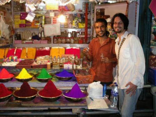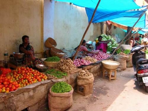 zauberhaft aufgeschichtete Farbkegel auf dem Markt in Mysore
